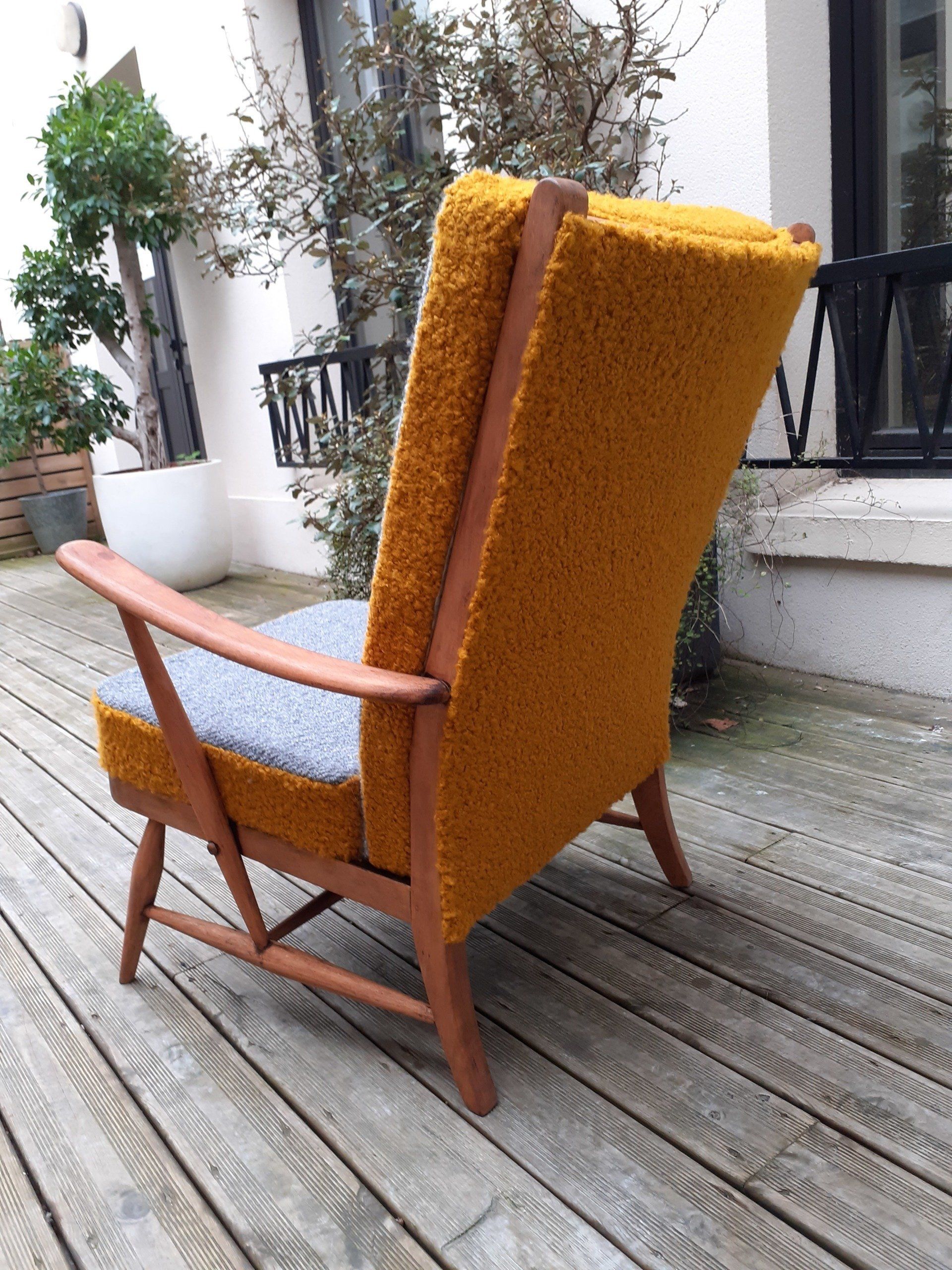 Lot de deux chaises années 60' du designer André Simard pour Airborne. Refaites à neuf dans la collection Vivid de chez Bisson Bruneel. On ne se lasse pas de son alchimie de teintes chinées et de la douceur de son toucher.